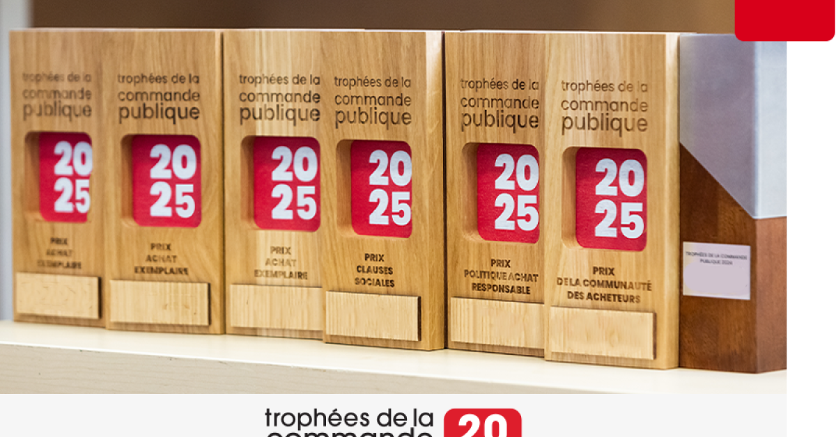 Les Trophées de la commande publique sont des prix décernés aux meilleures initiatives menées par des entités et organismes soumis au code de la commande publique qui cherchent à améliorer l’efficacité de leur politique achat durable et à rendre leurs marchés plus performants et innovants. Remis chaque année au mois de novembre à l’occasion du Salon des Maires et des collectivités locales, les Trophées de la commande publique sont une excellente source d’inspiration pour tous les acteurs publics qui souhaitent améliorer leurs pratiques.