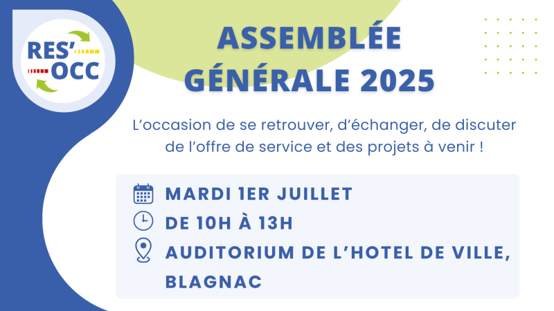 Le 1er juillet, de 10h à 13h, RES’OCC vous donne rendez-vous à Blagnac pour son Assemblée Générale annuelle !