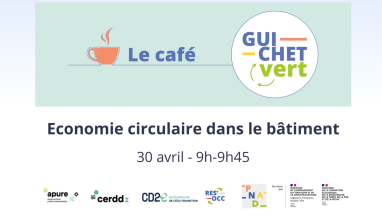 6ème édition du café Guichet Vert qui porte sur l'économie circulaire dans le bâtiment. Co-organisé par les réseaux APURE et RES'OCC.