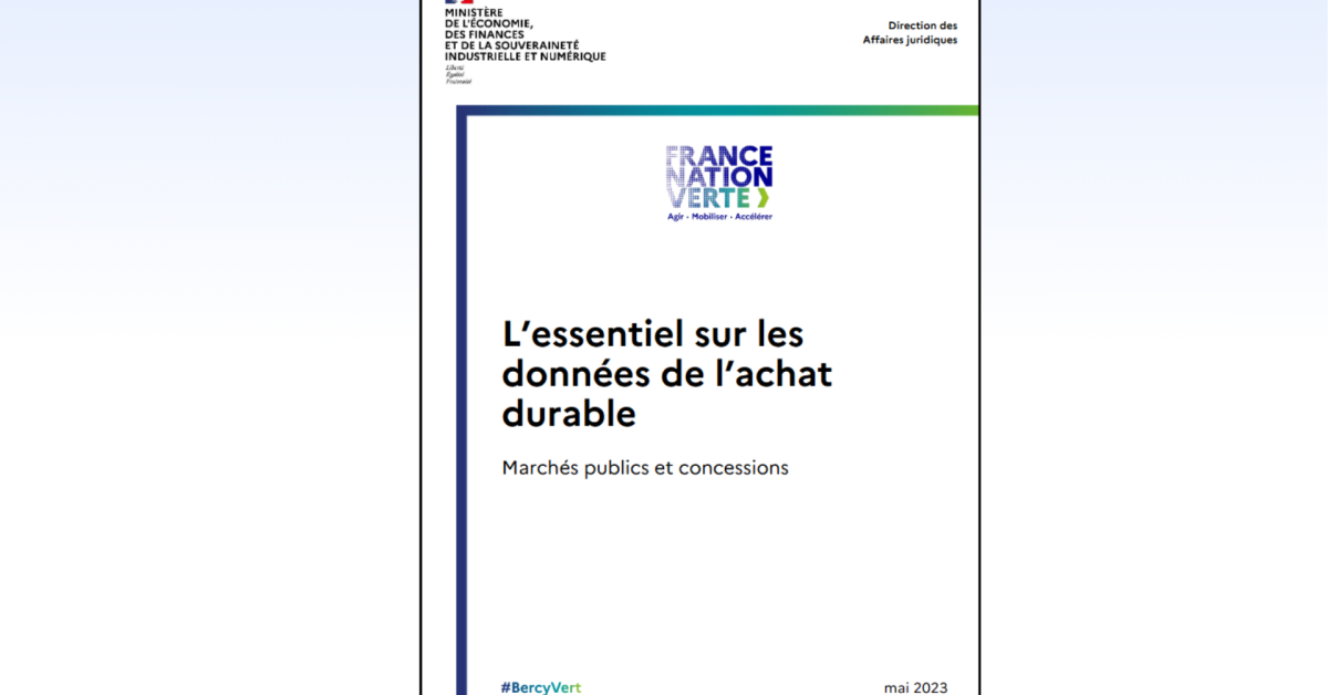 La direction des Affaires juridiques (DAJ) du ministère de l'Économie, des Finances et de la Souveraineté industrielle et numérique a publié une fiche en mai 2023 sur l’importance de disposer de données contenues dans les contrats de la commande publique et notamment celles relatives aux considérations environnementales, sociales et économiques afin de mesurer la progression des achats durables.