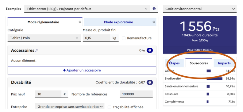 • Site internet / lien vers l’outil : https://ecobalyse.beta.gouv.fr/