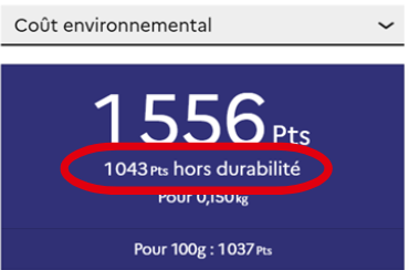 L’outil permet de disposer du résultat hors critère de durabilité : celui-ci est affiché en plus petit caractère, juste au-dessous du coût environnemental global.